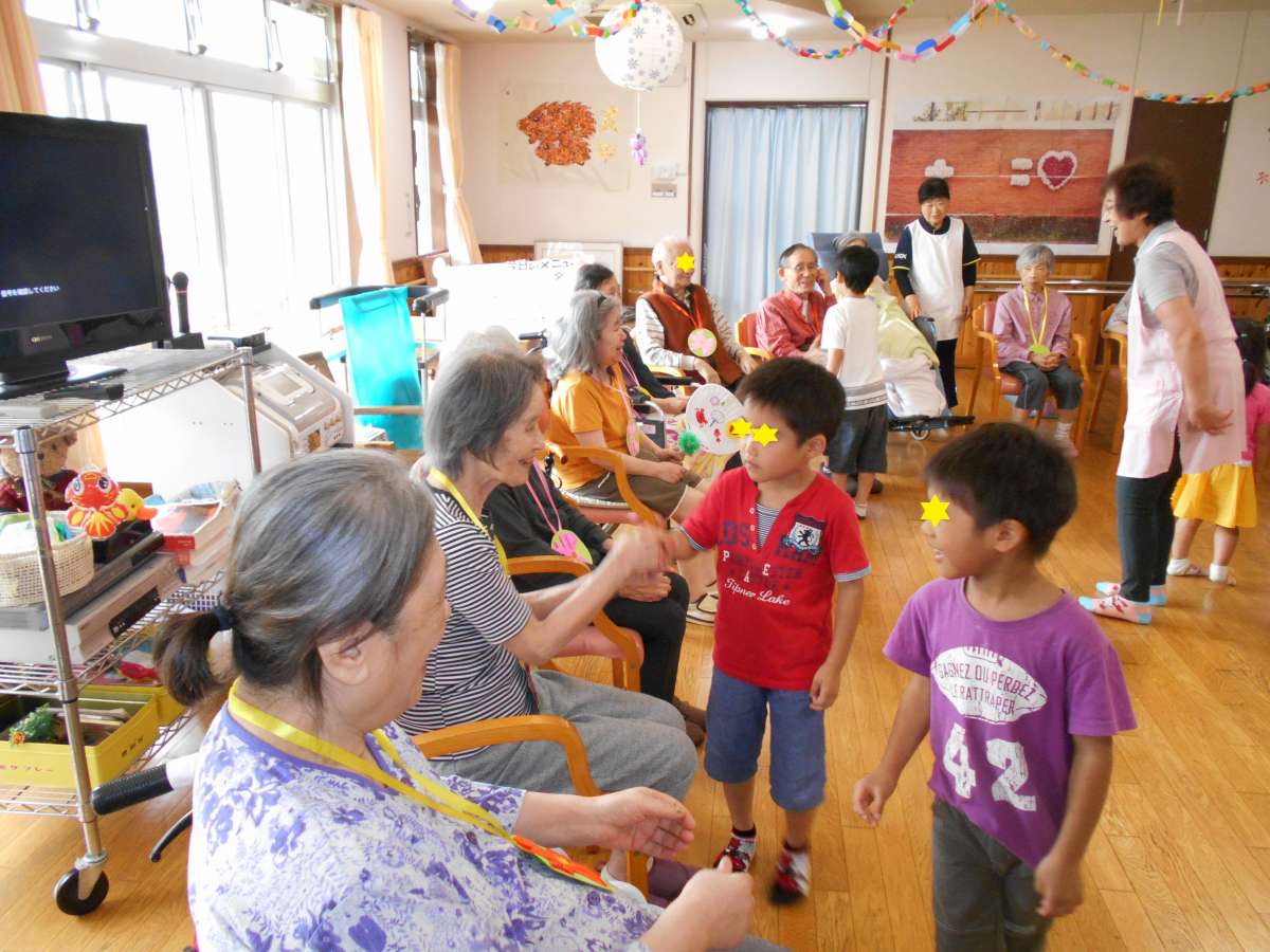 介護付有料老人ホームすこや家大宮日進に、パンダ保育園の園児たちが、敬老のお祝いに駆けつけてくれました。