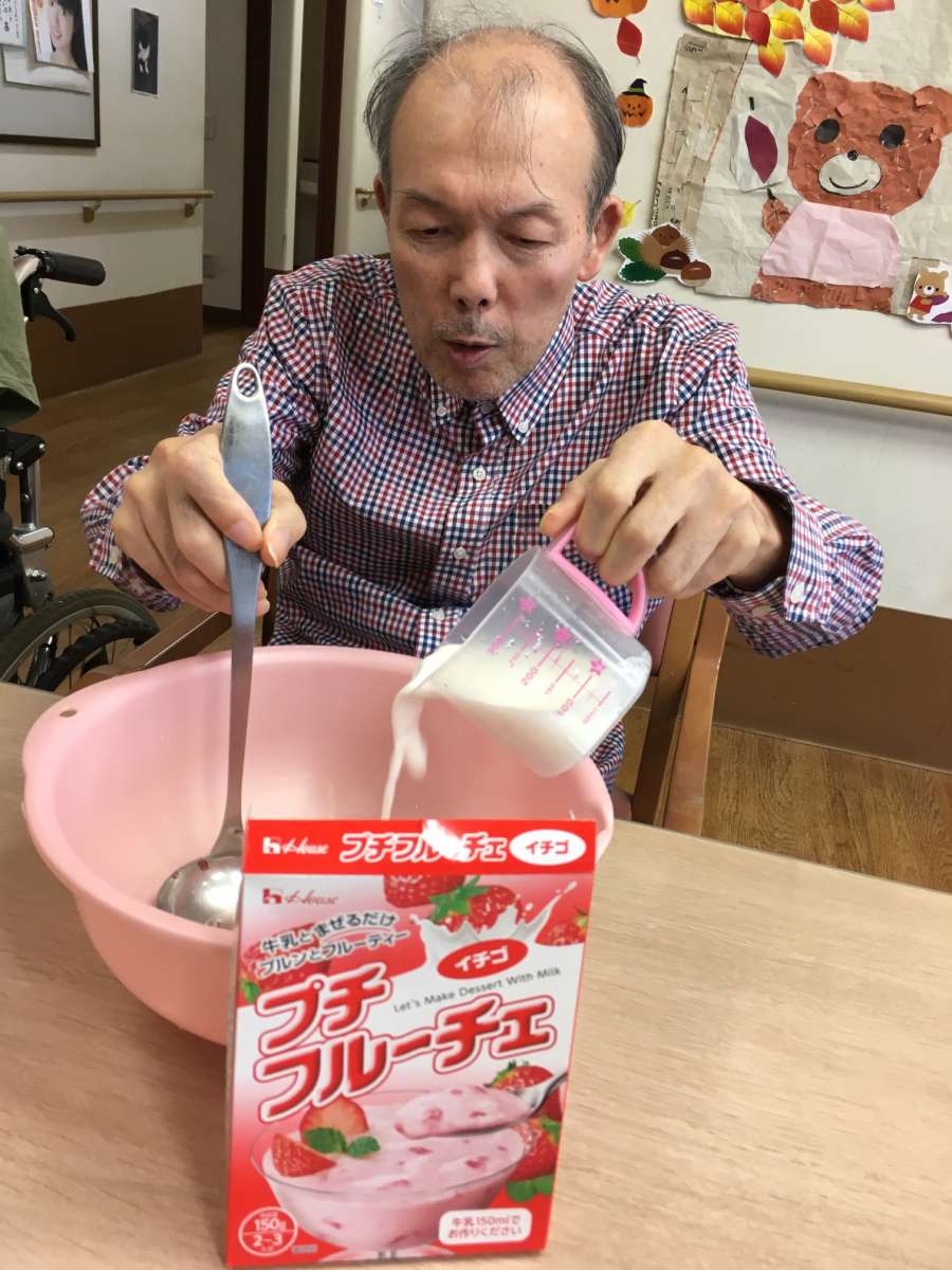グループホームみんなの家 志木中宗岡のIご利用者様におやつ作りのお手伝いをお願いしました。