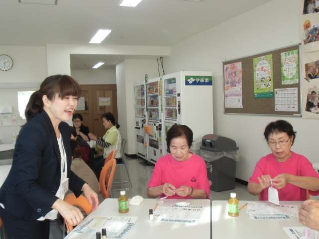 こんにちは。黒田です。今月のミニ講座は、『暮らしを彩るアロマの魅力』について、ウイズネットのセラピスト・寺薗紀子先生、金澤瑞穂先生にお話しいただきました。植物から抽出される天然の精油は、私たちのこころと体を良い状態整えてくれます。生活の中に上手にアロマテラピーを取り入れて、美と健康に役立てましょう!!当日は、ふんわり香るアロマサシェ(香り袋)づくりも体験。出来あがったサシェはお土産に。当日から早速、アロマを暮らしの中に取り入れていただけたのではないでしょうか。ご参加下さった皆様、寺薗先生、金澤先生。ありがとうございました。