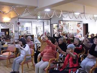 隣のデイサービスと一緒に体操を楽しんでいただきました。