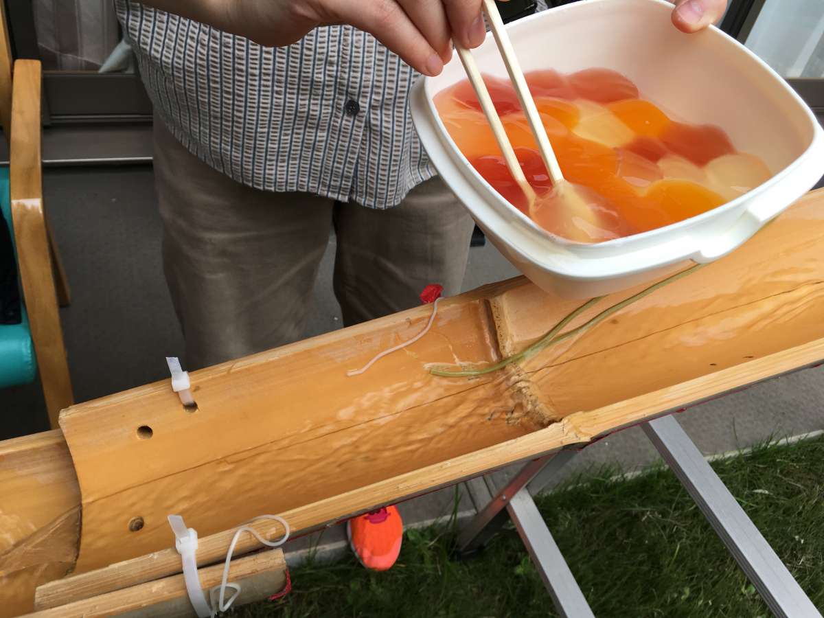そうめんだけが流れるとは限らないのが「みんなの家・殿山北糀谷」の流しそうめん。