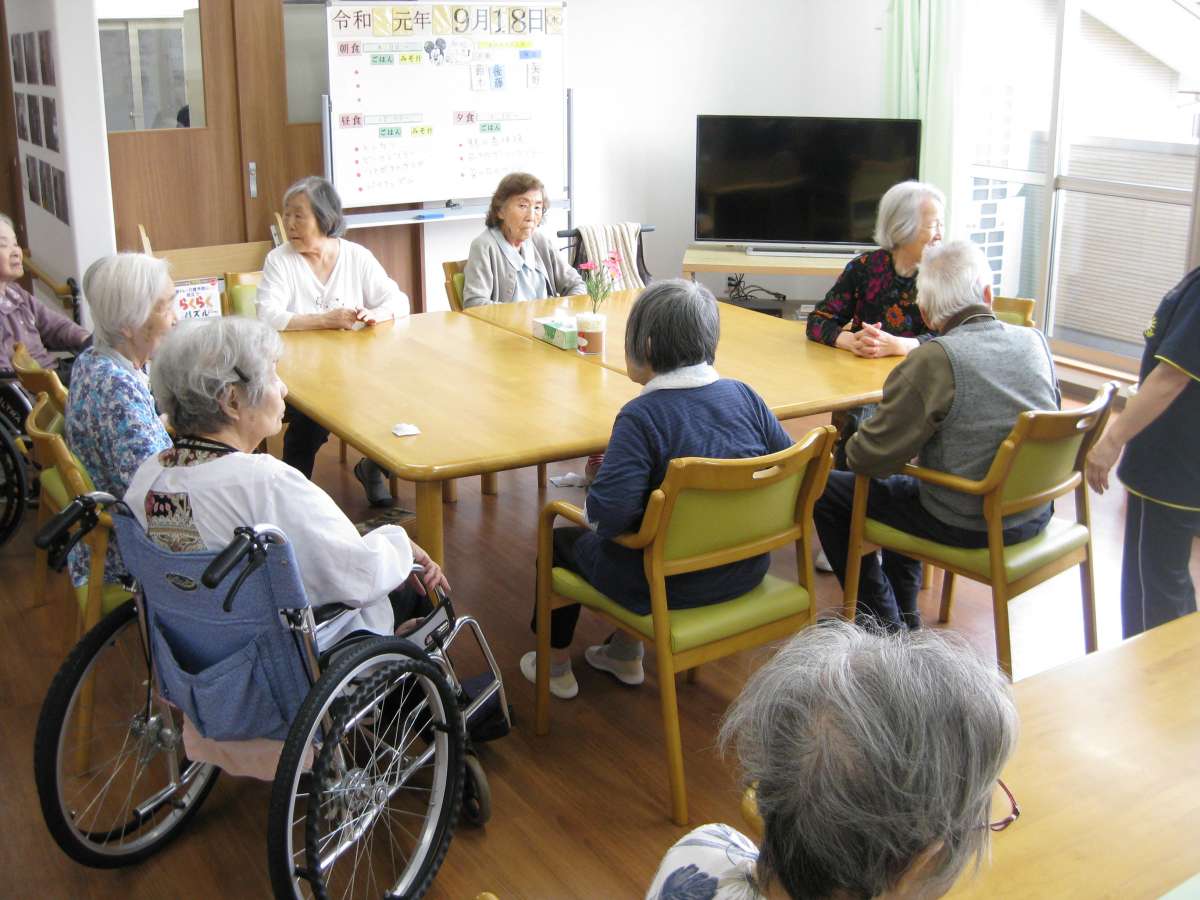 2階のフロアに全員集まってホーム長のお話を聞いていただきました。