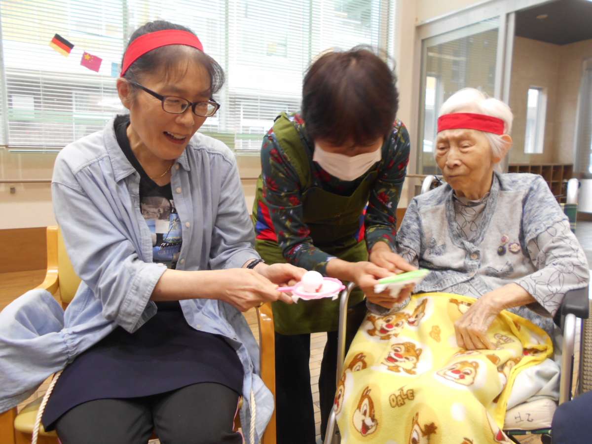 | こんにちは、グループホーム みんなの家・春日部花積です。 18日の運動会、室内でしたが大運動会は 玉入れ ピンポン玉運び 大玉運び パン食い競争 借り物競争とすべての 競技を紅白で競いなんと!! 仲良く同点で幕を閉じました ご家族様の参加もあり本当にありがとうございました 笑いがいっぱいの運動会でした |