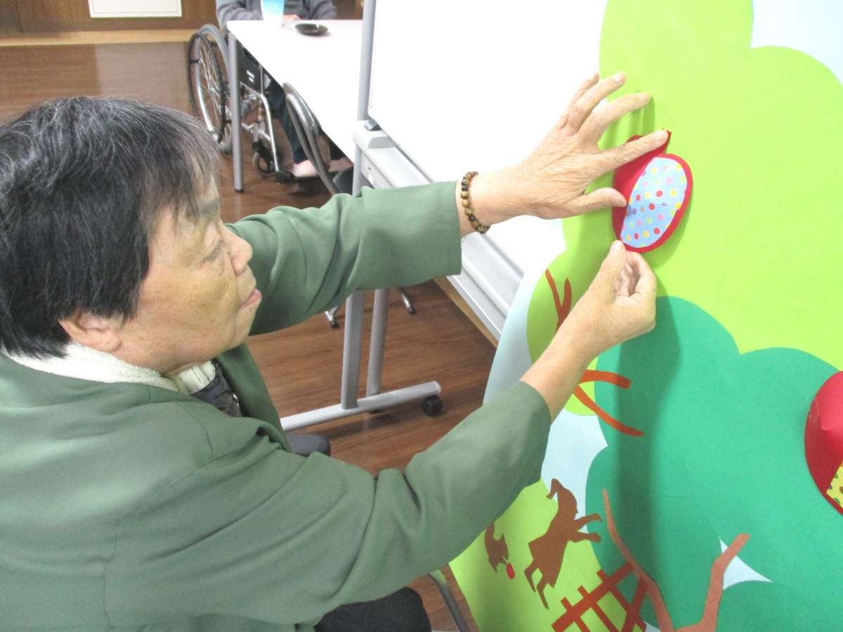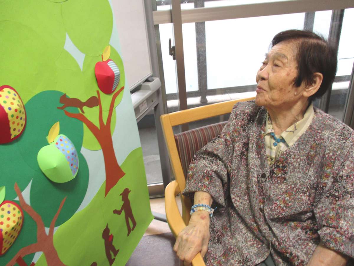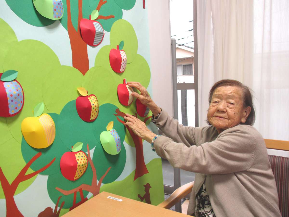 職員さんの作ったリンゴの木に