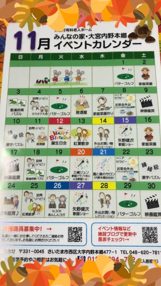 来月も、歌謡ショー・居酒屋の会・お買い物レク・紅葉散策ツアー、、、などなど☆盛り沢山です(^。^)