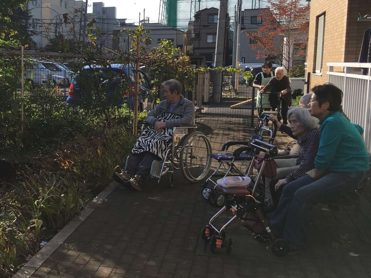 グループホームみんなの家・与野鈴谷のある日の外気浴風景です。