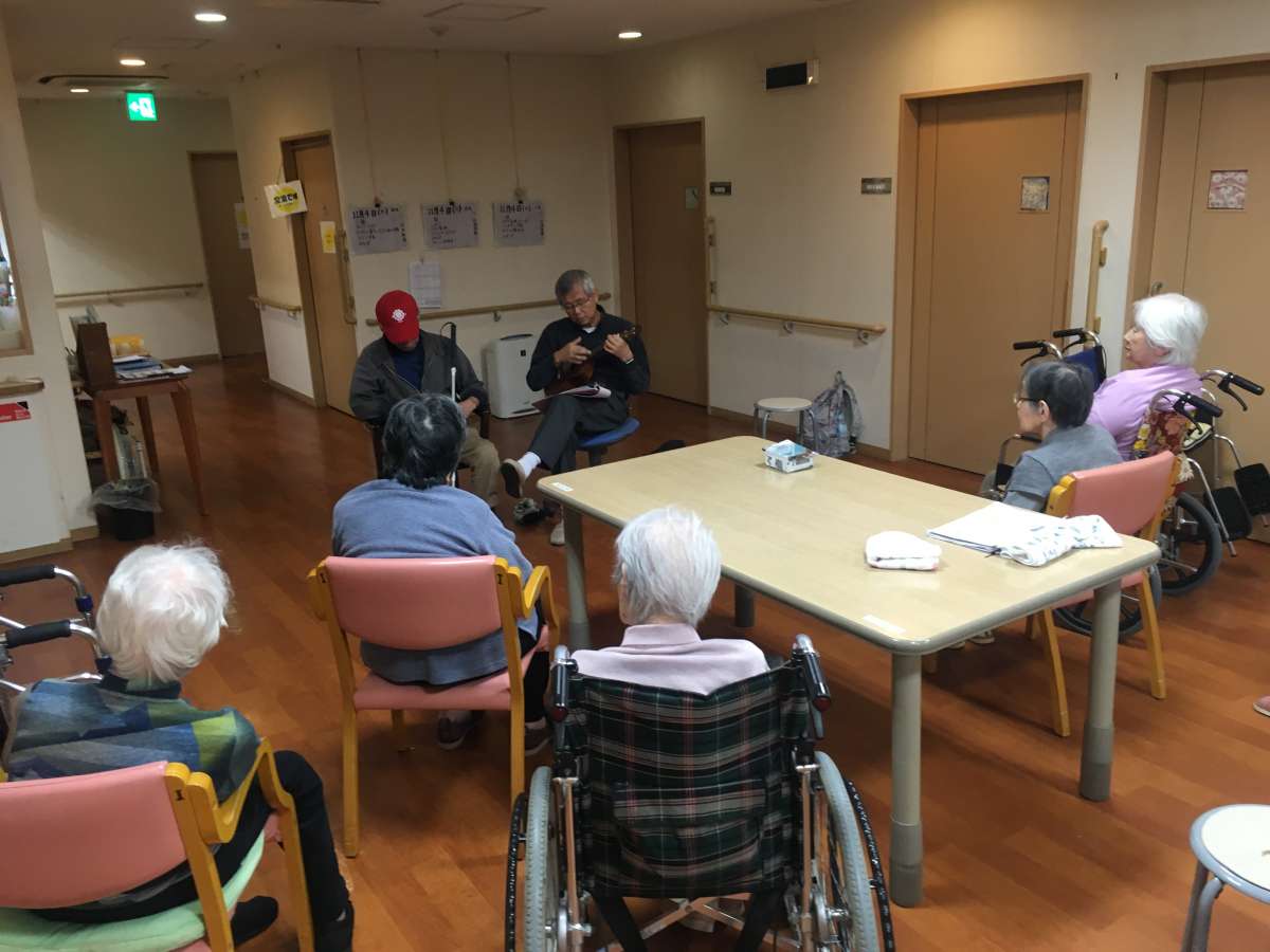 待っている間、少しだけ演奏をお願いしちゃいました!即興で4~5曲、ご利用者様も一緒に合唱しとても楽しく歌うことができました!!