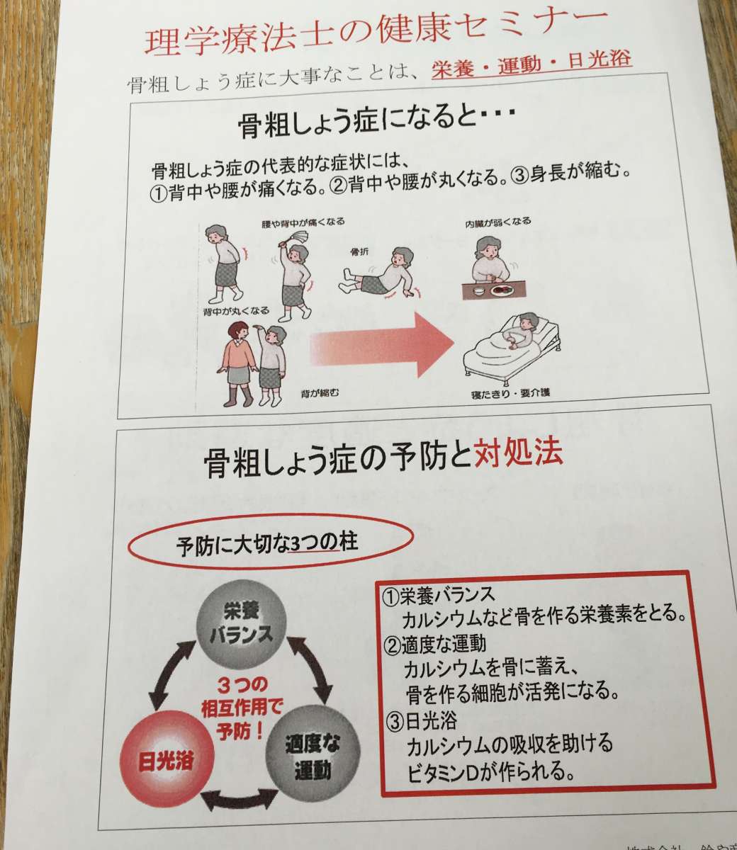 また、看護ステーションの理学療法士さんが来てくださり、骨粗鬆症にならない為の
