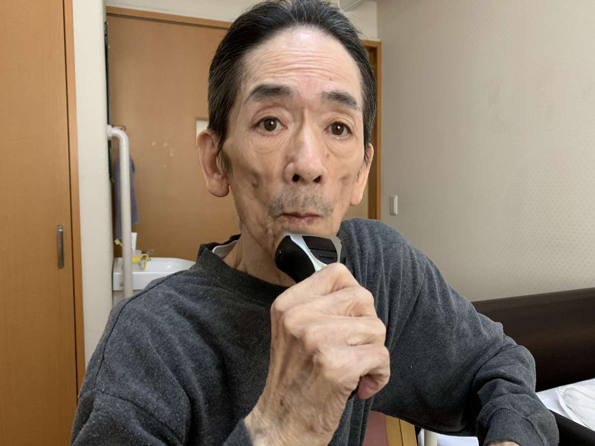 (新しいシェーバーで髭剃り中)