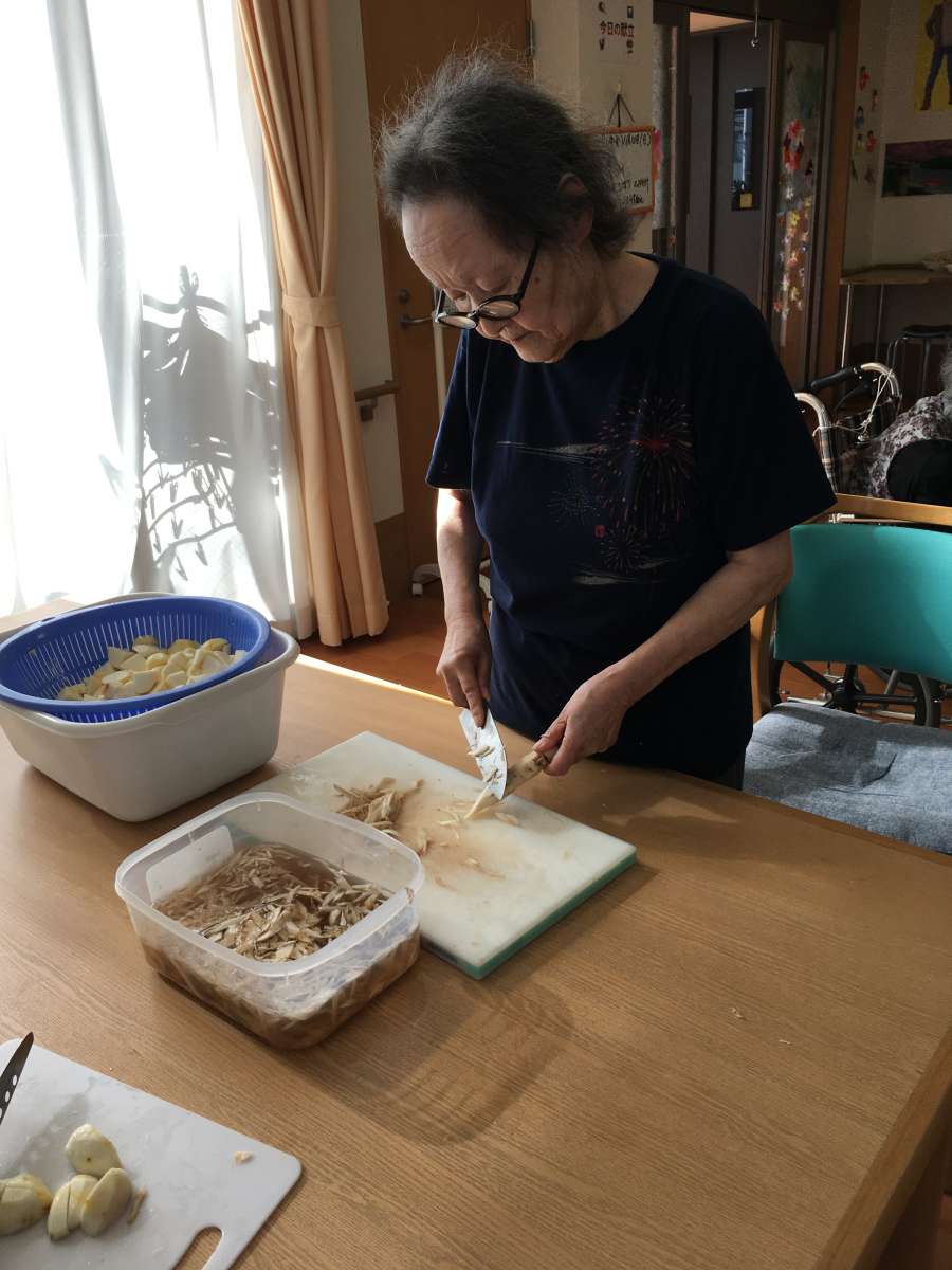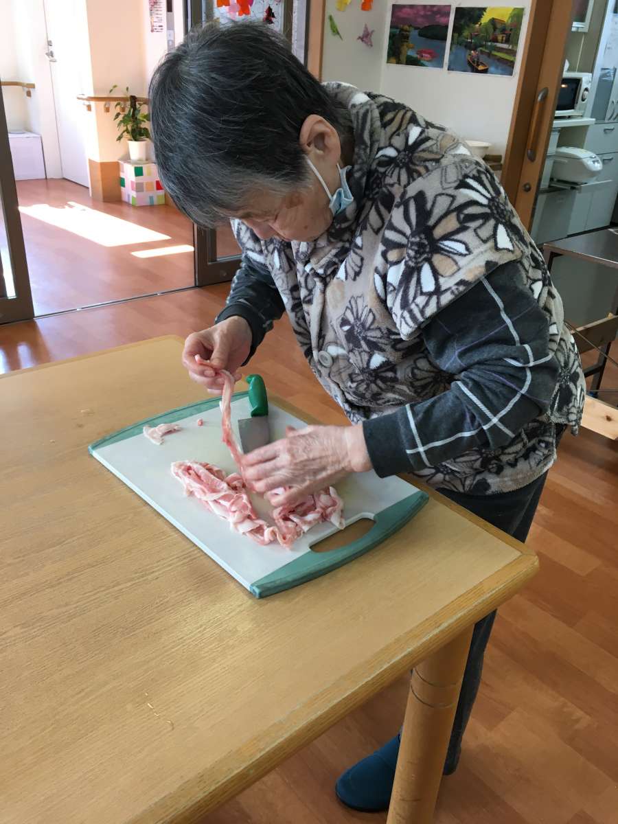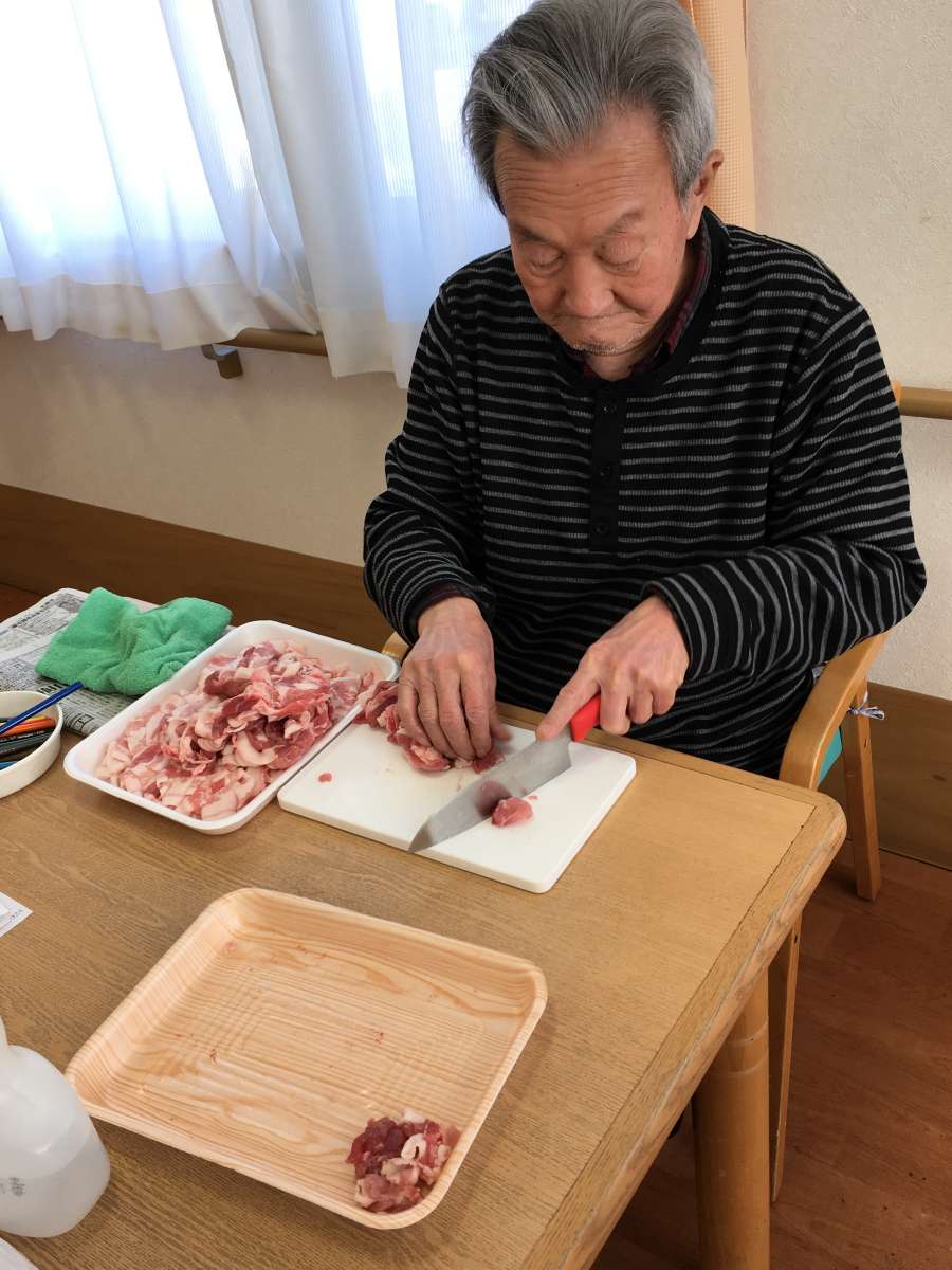 こんにちは!みんなの家三郷2です。ブログをご覧頂き有難うございます。11月10日は三郷2で、秋の収穫祭として「芋煮、焼き芋」をやりました。この日は最高の秋晴れで寒く無く暑くもなかったです。毎年、秋の収穫祭では室内で焼き芋やトン汁を召し上がっていましたが、焼き芋の炭を起こしていたらホーム長が焼き芋の様子を見にきてくださいまして、今年は外で皆さんと食べましょうと声をかけてくださいました。嬉しかったです。急遽会場を変更して他のスタッフに伝え、椅子、テーブルを玄関外に設置準備完了!今年も、ご家族様も来設され皆さんと「焼き芋、トン汁」を召し上がりました。野菜と肉はスタッフと利用者様と一緒に仕込みしましたよ!男性の利用者様も包丁裁きは、おてもの