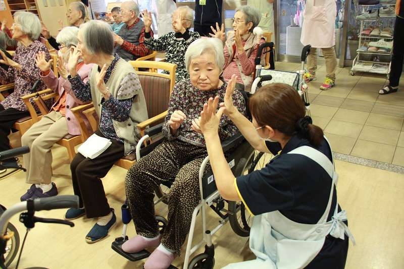こんにちは、グループホーム みんなの家 西東京です。11月8日は、立冬でしたね!朝晩かなり寒くなってきました。今ここの施設、外向とエアコン工事が入っていて、共有部や各居室のエアコンが新しくなっております。居室のエアコンは、交換が終わるとすぐに可動するのですが、共有部の大きなエアコンは、屋上の室外機につなげるため全部のエアコンがとりつかないと動かないので、朝晩皆様、ちょっと厚着になってきました。もう少しで終わりそうですそれまで少しの我慢です。さて、本日は、月の第2火曜日、NŌAエクササイズの日です。1階のエントランスに、各施設のご利用者様(本日は、42名の参加)が集まり、無理なく少しづつ体をほぐしながら指先から全体に血流を良くする運動を約50分皆様いつもニコニコしながら、時に大きな声で笑い、おなかから声を出し終わるころには皆様のホッペがリンゴのように赤くなりました。12月は10日です。今年最後のNŌAエクササイズになります。どなたでも参加できます。無料です。すこや家 西東京に12月10日 14:00~です。どうぞご参加ください。お待ちしております。