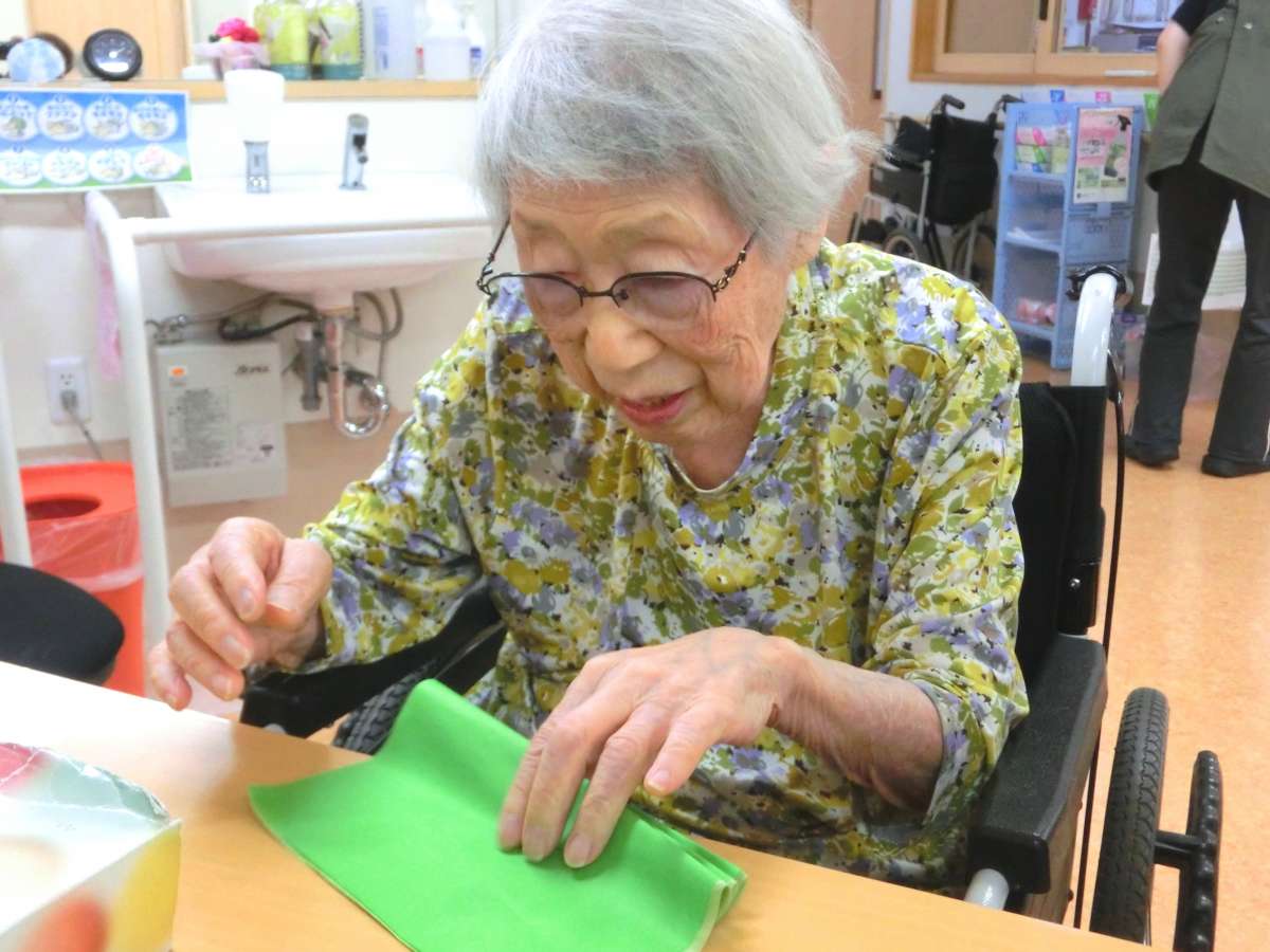 今回の壁紙シリーズは入居者様に『おはながみ』作成のお手伝いをして頂いております。