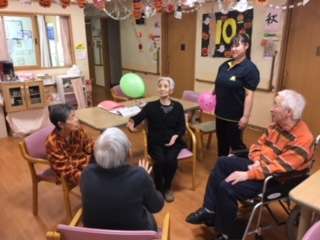 今回は日常の一コマの中、レクリエーション活動の一環として風船バレーを行った際の風景を上げさせていただきました。