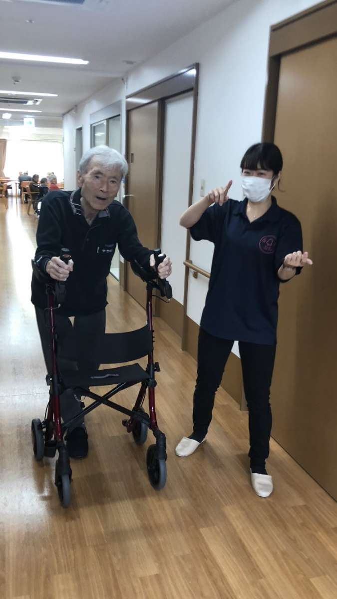 こんにちは。みんなの家・大宮内野本郷のコダマです(๑˃̵ᴗ˂̵) 週2に二回のリハビリのお時間を大変楽しみにされているS様。普段車椅子で生活されているのですが、なんと!リハビリの先生と歩行器でこんなに上手に歩かれていました☆ Uターンもお手の物!皆さんに『凄いよ!しっかり歩けてるよ!』と言われ、嬉しそうな笑顔を見せてくれました(^。^) これからも一緒に頑張りましょうね♬