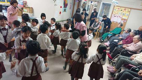 歌や踊りを披露してくれ入居者様はニコニコ(^^♪