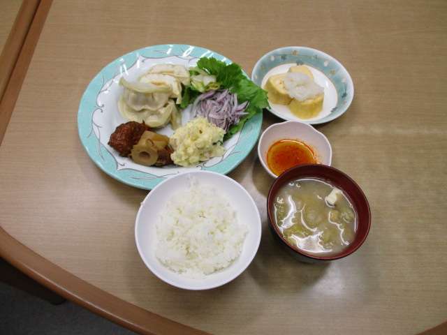 3階では、餃子、卵焼き、ポテトサラダ、煮物、具だくさんの味噌汁を作り