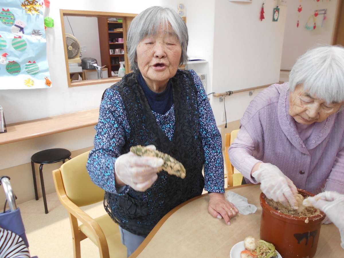 | こんにちは、グループホーム みんなの家・春日部花積です。 今日はとても楽しいおやつ!!の紹介です。 Y職員の家宝である「ぬか床」がホームにお目見え。 皆さん ぬか床を前に びっくりと同時に すぐにかき混ぜ態勢です! これは毎日、かき混ぜるのが大事なのよ~と 主婦の鏡の様な皆様でした |
