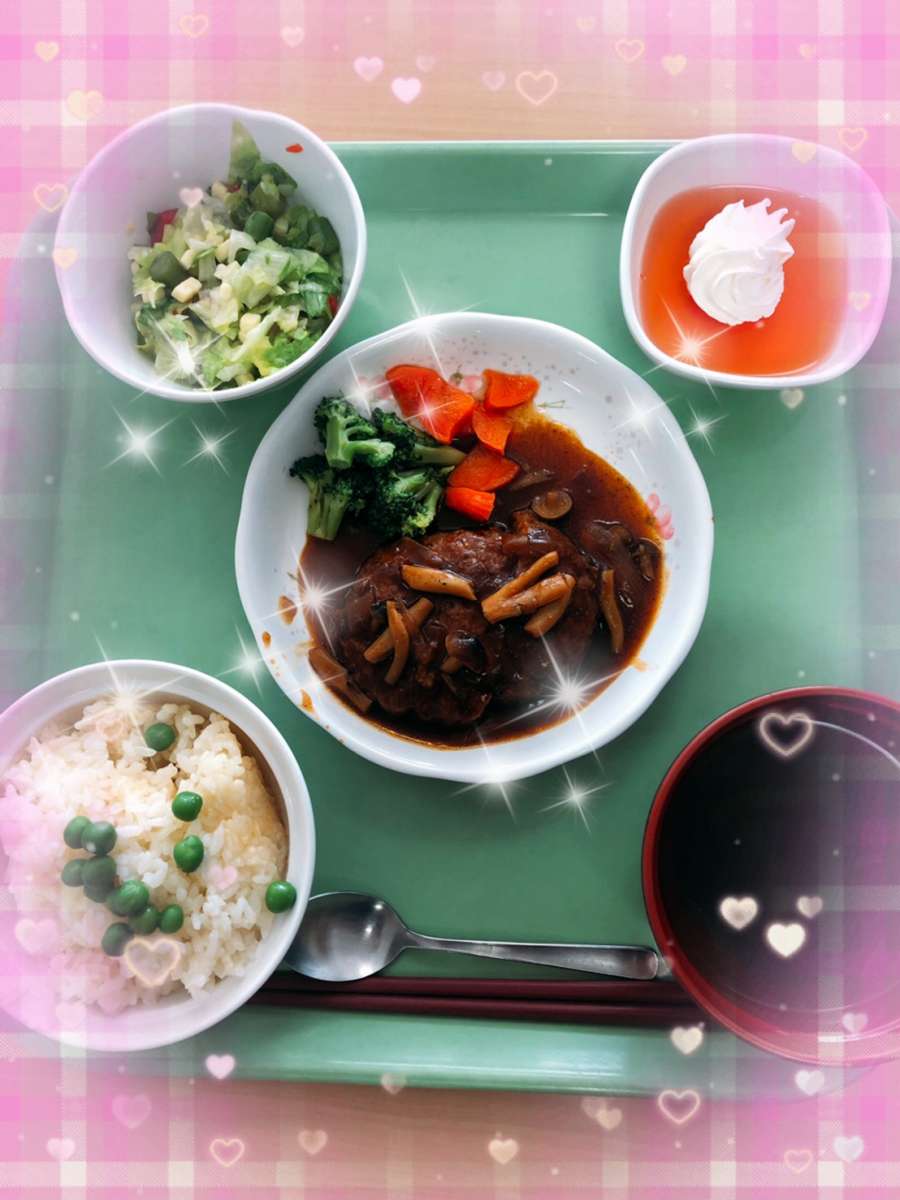 こんにちは。みんなの家・大宮内野本郷のコダマです(๑˃̵ᴗ˂̵) 本日の二階フロアでのお昼ご飯のご様子です☆ 「煮込みハンバーグ⁈お洒落だねぇ♬」 「洋食は久しぶりだなぁ♬ここに居ると色んなものが食べられるから嬉しいよ♬」 と、賑やかな声が聞こえてきました。 大勢で食べるご飯は格別ですねぇ(^。^)♬