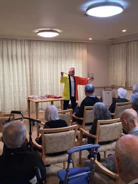 ボランティア「南京玉簾友の会」のお二人が披露される、手品や踊りに皆さん目が釘付けになっていました。