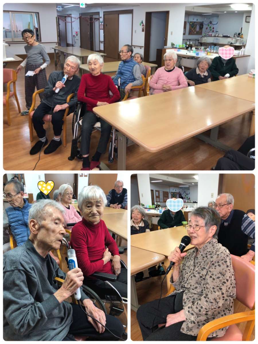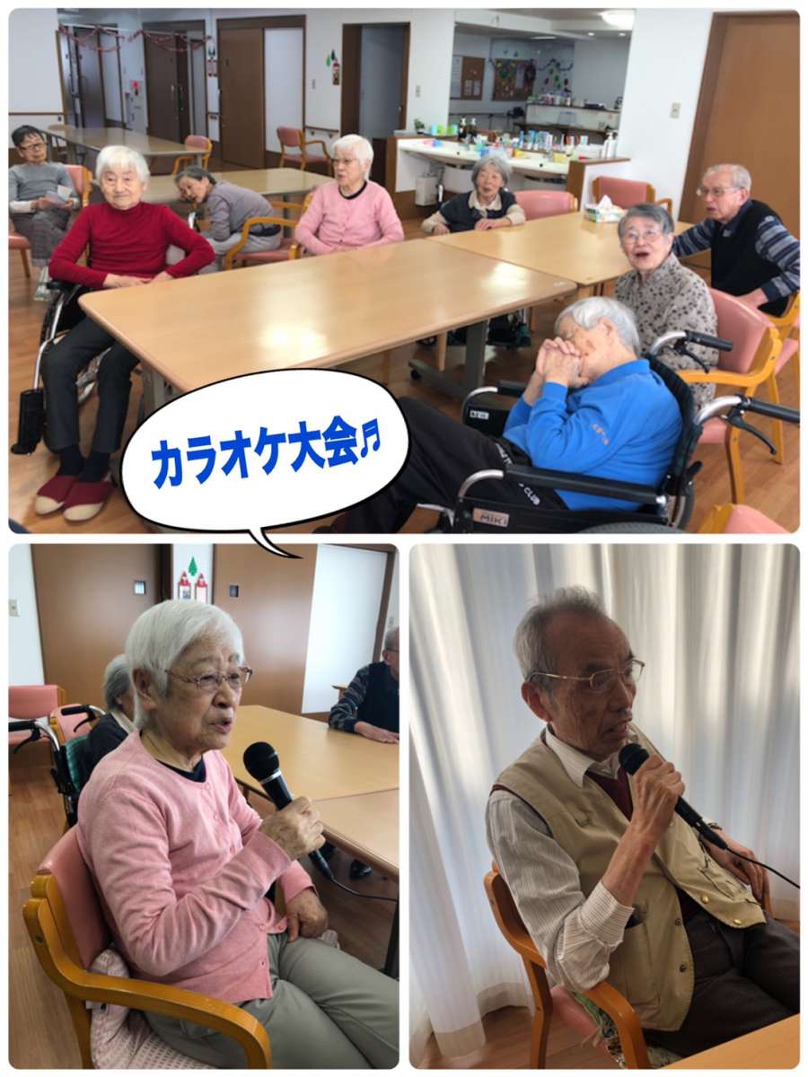 こんにちは。みんなの家・大宮内野本郷のコダマです(^。^) 本日の午後は『カラオケ大会』を行いました♬ 皆様、童謡から演歌・歌謡曲まで、マイクを握り、熱唱されていましたよ☆ 自然と口を大きく動かす事で、唇や舌など口周りの筋肉を鍛えられ、誤嚥防止に繋がりますね。 音程やリズム、歌詞を読むことなどで脳も活性化することが出来ます。 是非またやりましょうね〜(๑˃̵ᴗ˂̵)