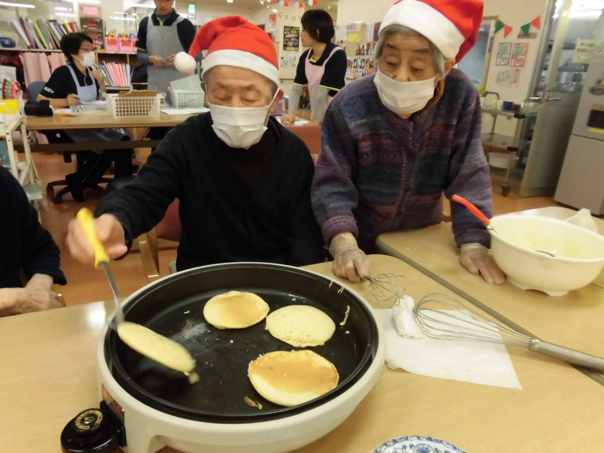 そして最後は本日行われました「お楽しみレク」のほうです。今回はパンケーキ制作となりました。