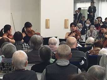 左から、ヴァイオリン久保田綾香さん、ヴィオラ松村ハンナさん、チェロ米本希さん、ヴァイオリン廣田碧さん、四人で雅カルテットの皆さんになります。