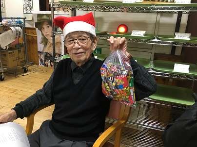利用者さんにもサンタの帽子をかぶって頂きました。