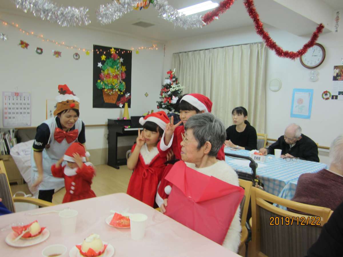 こんにちは介護付き有料老人『みんなの家・三橋6丁目』です。『クリスマス会・第2部』はご利用者様、ご家族様皆さんで『クリスマスケーキ』を召し上がって頂きました(^^)/美味しいケーキ食べているとそこへ…『ちびっこサンタ登場‼』プレゼントを配ってくれました(^_-)-☆ 美味しいケーキに可愛いサンタさん 皆さん笑顔の第2部でした♪今回もたくさんのご家族様の参加ありがとうございました。