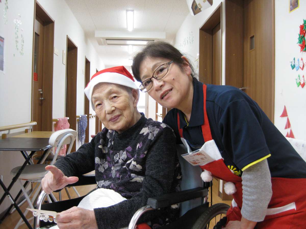 12/18 クリスマス会を行いました。ボランティアさんにハーモニカ演奏がありました。皆一緒に歌を歌っていました。『これも知ってる、いいよね、先生上手だねぇ・・・!』 『また、来てね、待ってるから、楽しみにしています。』 みんな楽しまれたひと時でした・・・(笑) ビンゴゲームでサンタさんからプレゼントをゲットしました。【嬉しい、いいのが当たったね・・!】 「私まだ当たらないよ~」イライラぎみでした。みんなの分あるので大丈夫ですよ、本当・・良かった! 最後にクリスマスケーキを食べました。『やっぱりケーキだねぇ・・・プレゼントはそっちのけでした。』 みんな喜んでいました。良いクリスマス会になりました。もう何日寝るとお正月です。元気に過ごしたいと思います。これからもグループホーム:あきがせを宜しくお願い致します。