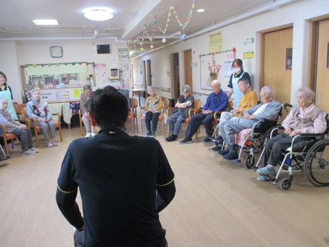 毎月、開催されている、全体での体操ですが、トレーナーの方が