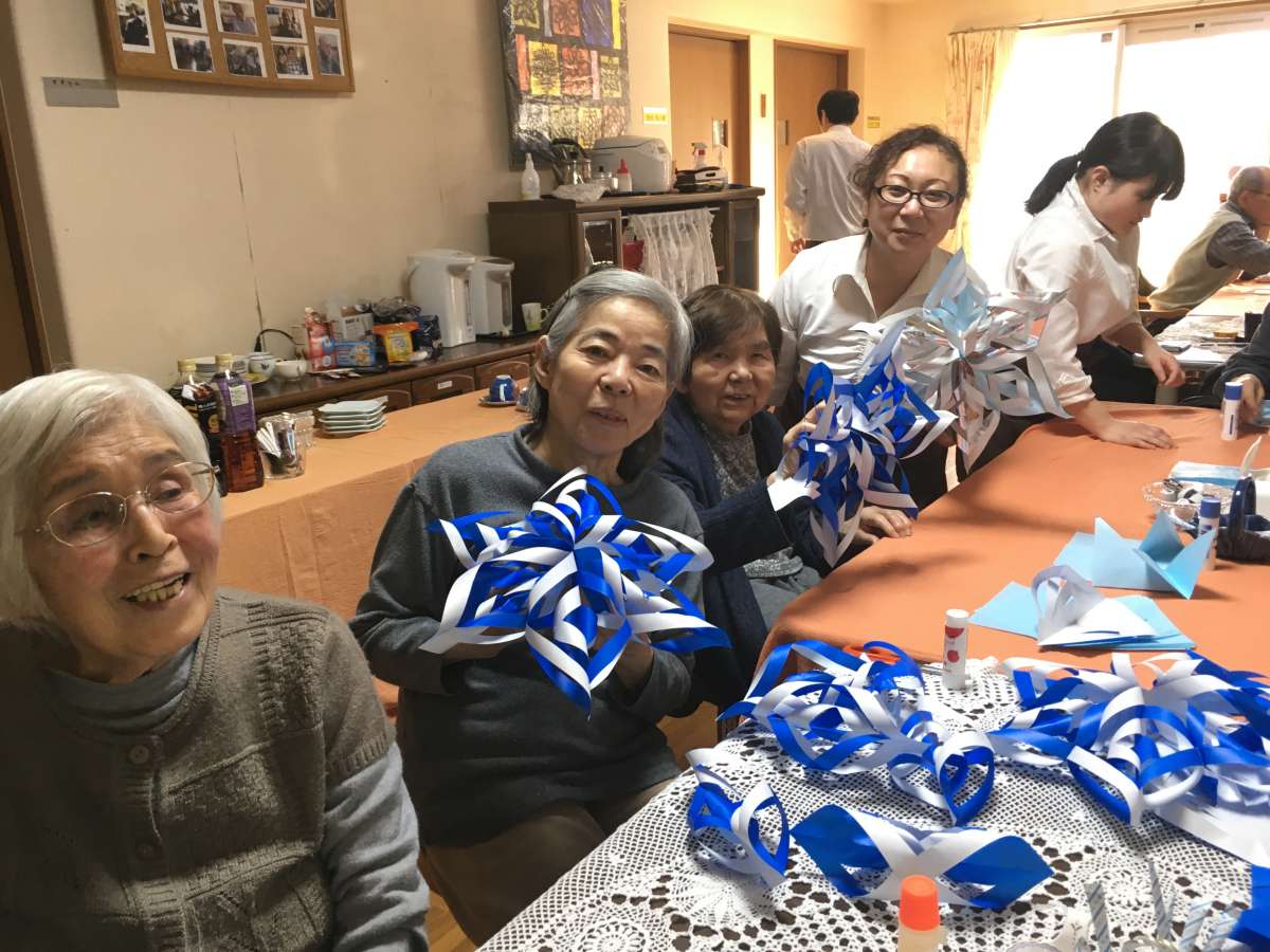 みんなの家・与野鈴谷にはいろいろな趣味や特技を持った職員がおりまして、その中でも折り紙上手な二人の職員が担当させていただきました。