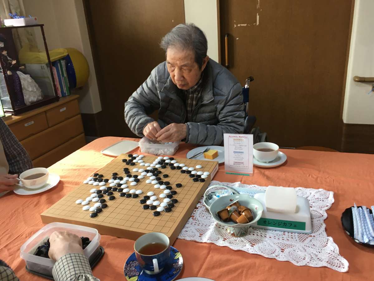 みんなのオレンジカフェの一角では、男たちの囲碁対戦も。