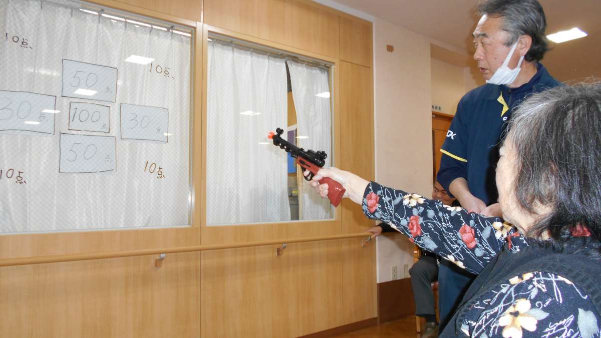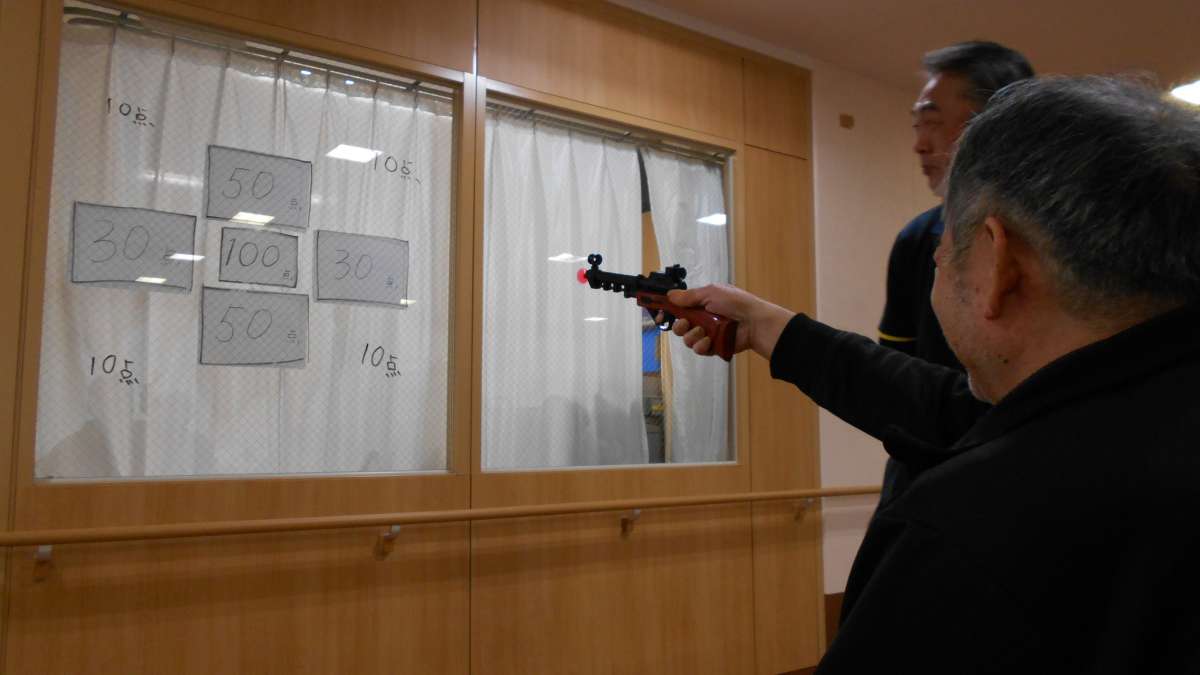 今日は室内レクで射的ゲームを行いました