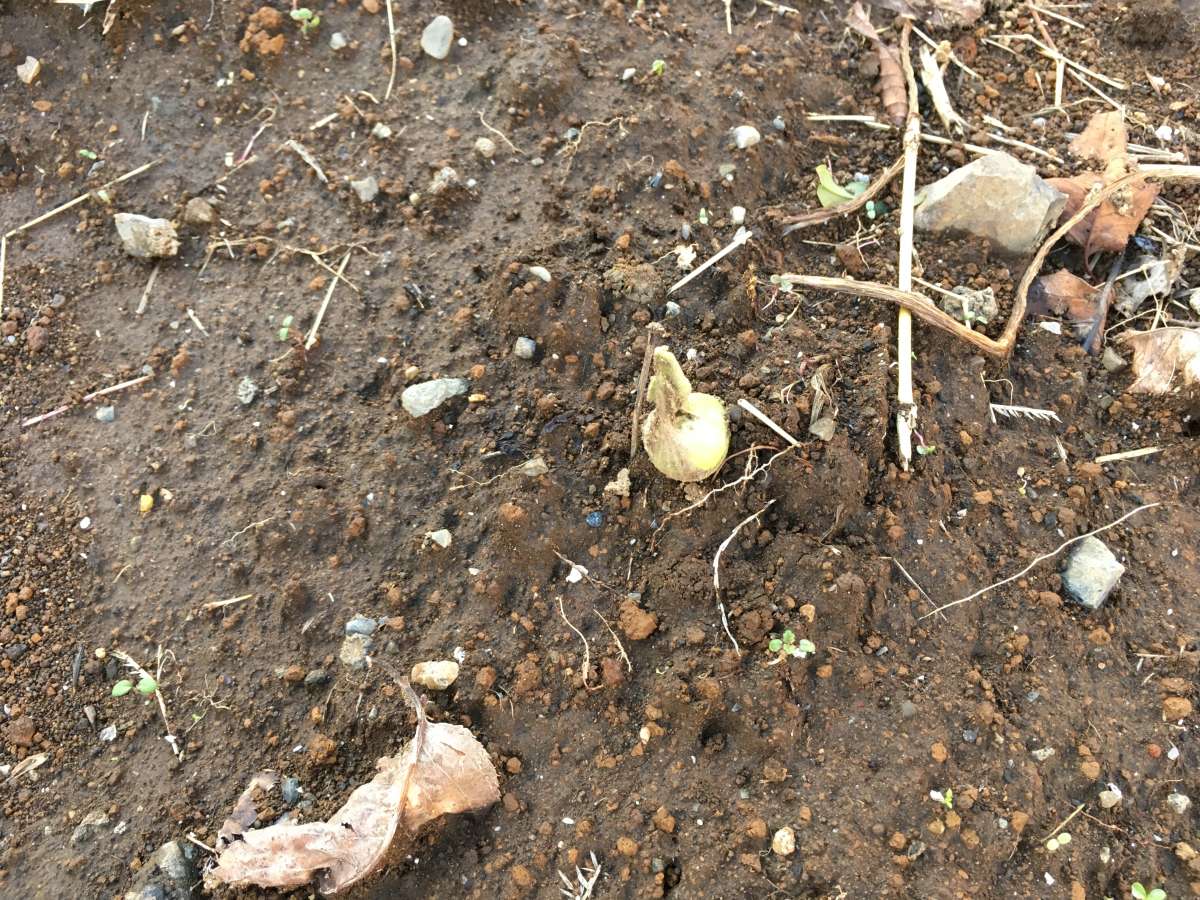 一見、殺風景な畑には、ちらりほらりと春の芽が。