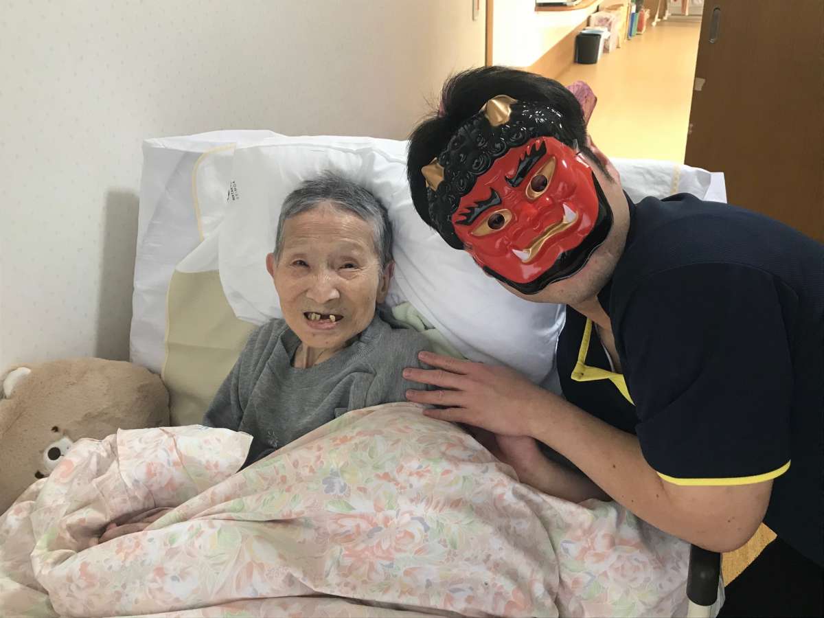 節分の今日、利用者の皆様と豆まきをしました!(^^)!