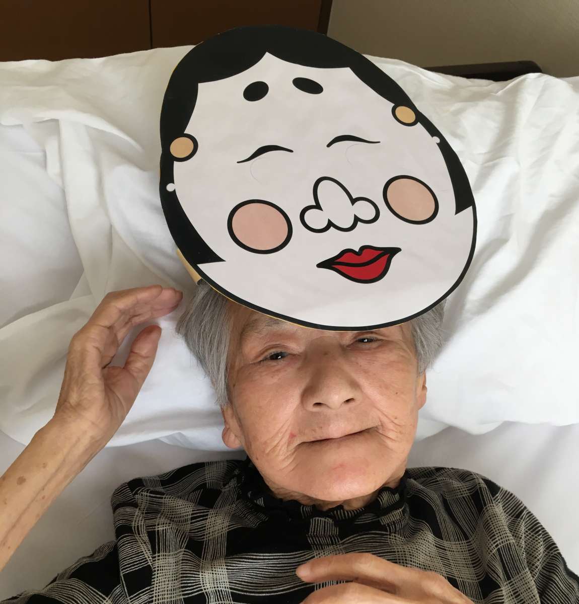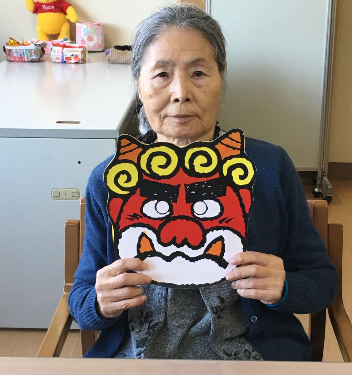 今回の節分は,皆様でお面を被って記念撮影と,豆まきを行いました。