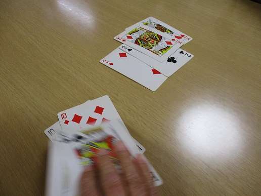 宮原駅西口よりバス6分&徒歩4分のところにある施設です今日の1階は入居者様とトランプを使ってババ抜きと神経衰弱!
