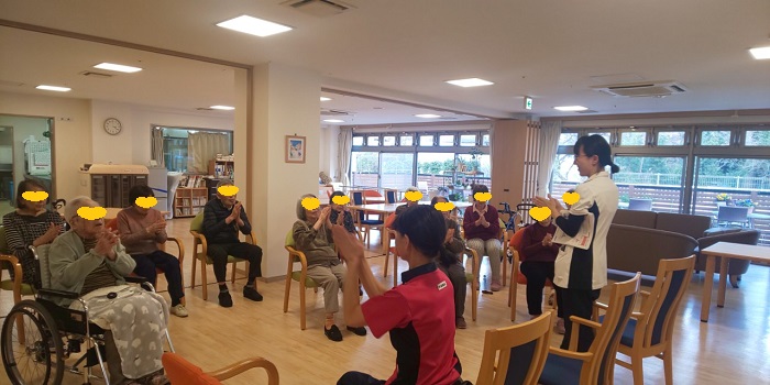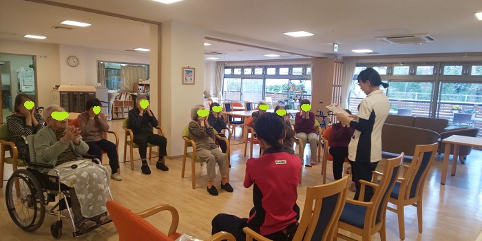 先日、ヨガの講師を招いて『あんしんヨガ』を行いました。