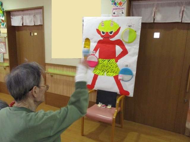 鬼の近くのネットにボールが入ればお菓子をゲット!!