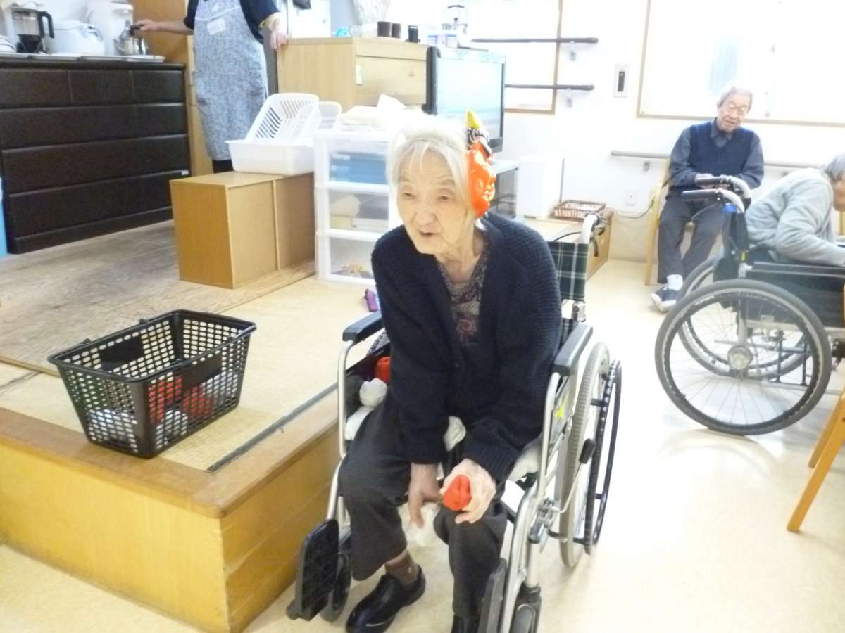 | こんにちわ グループホーム みんなの家・春日部花積です 節分という事で、豆まきから楽しいゲームを思いつきました! 鬼に見立てた牛乳パックに(鬼の面付き)玉を投げて 倒すのです。 もちろん投げるときは「鬼は外」「福は内」 当たると楽しいゲームです 厄払いも出来ましたね ![]() |