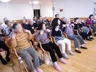 昼食後、皆さまは本館の食堂ホールにて、体操の先生を待っていました。