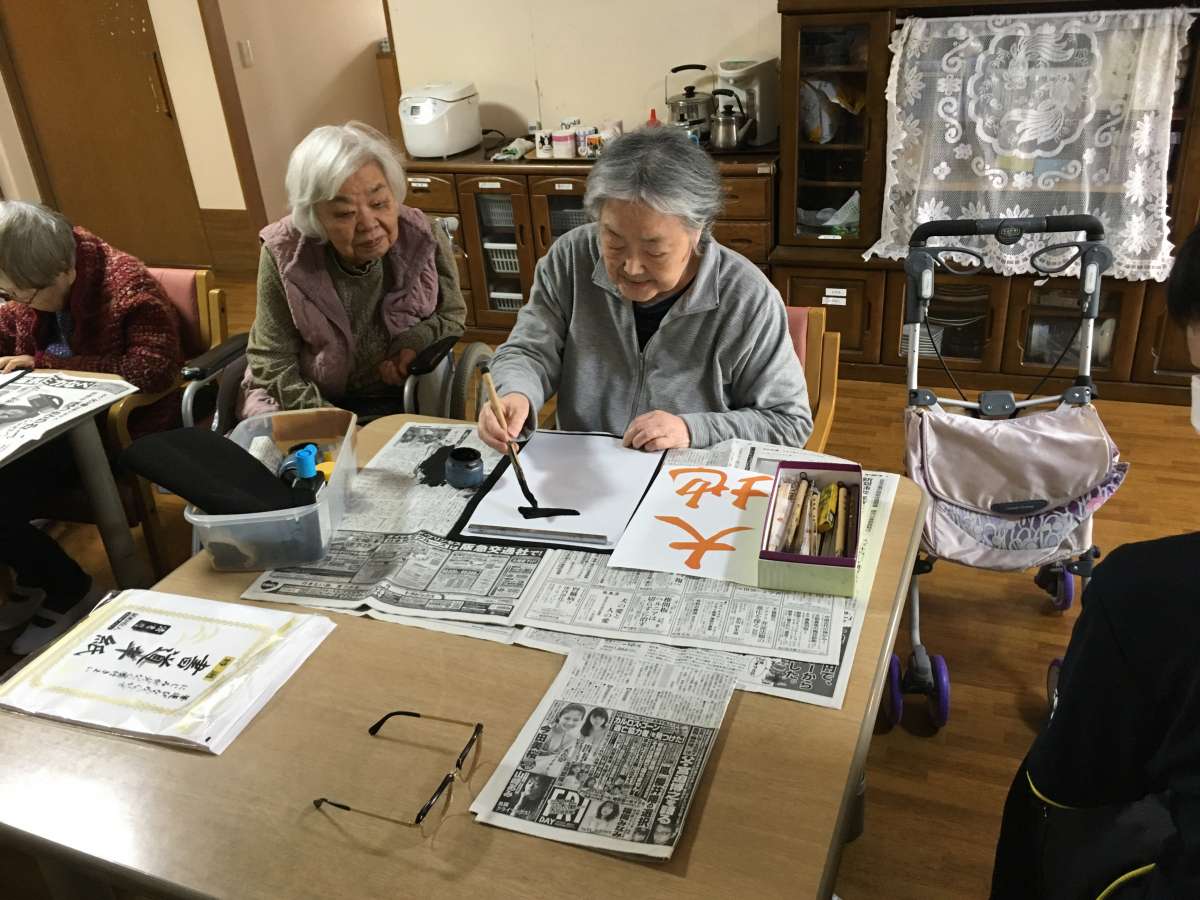 先日、当ホームでは、毎月恒例の書道クラブが開催されました。