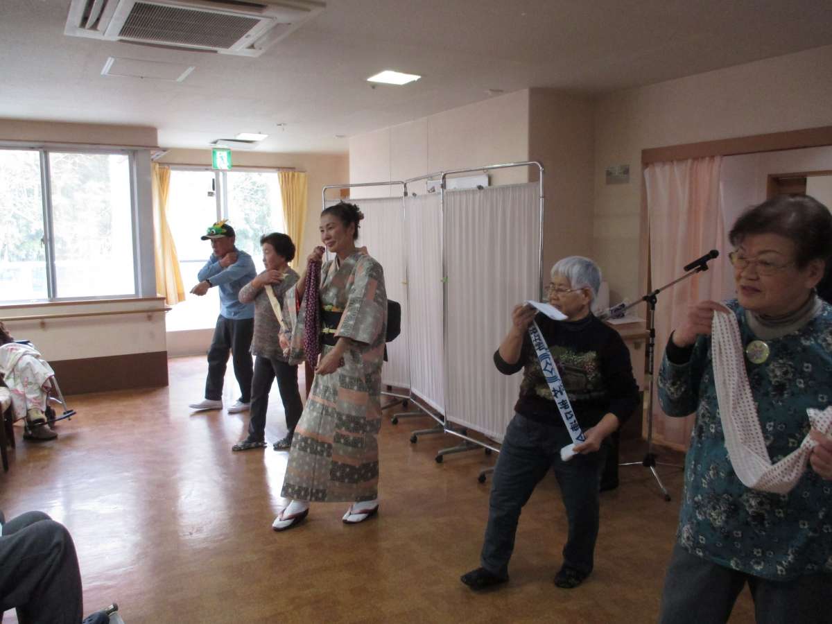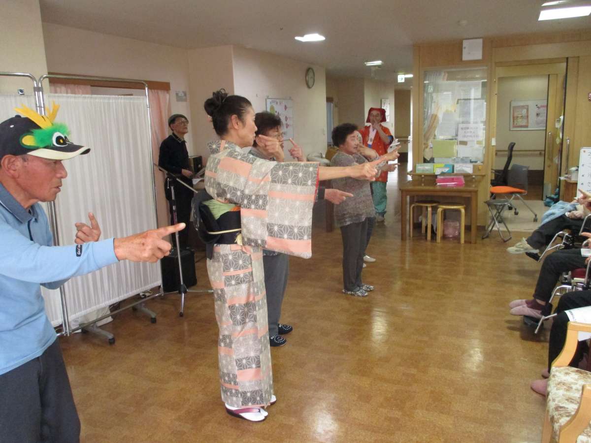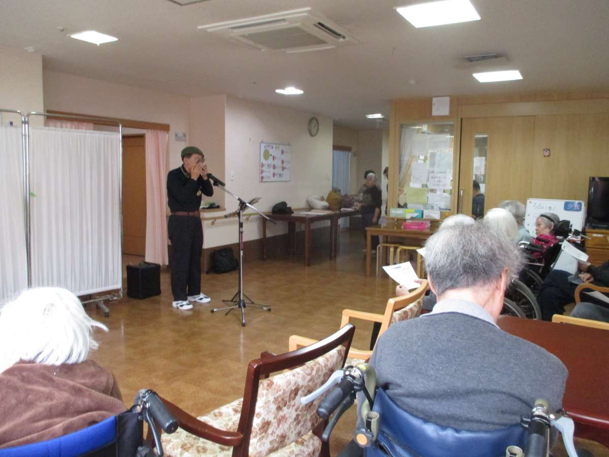 ハーモニカ演奏に合わせて皆で歌ったり