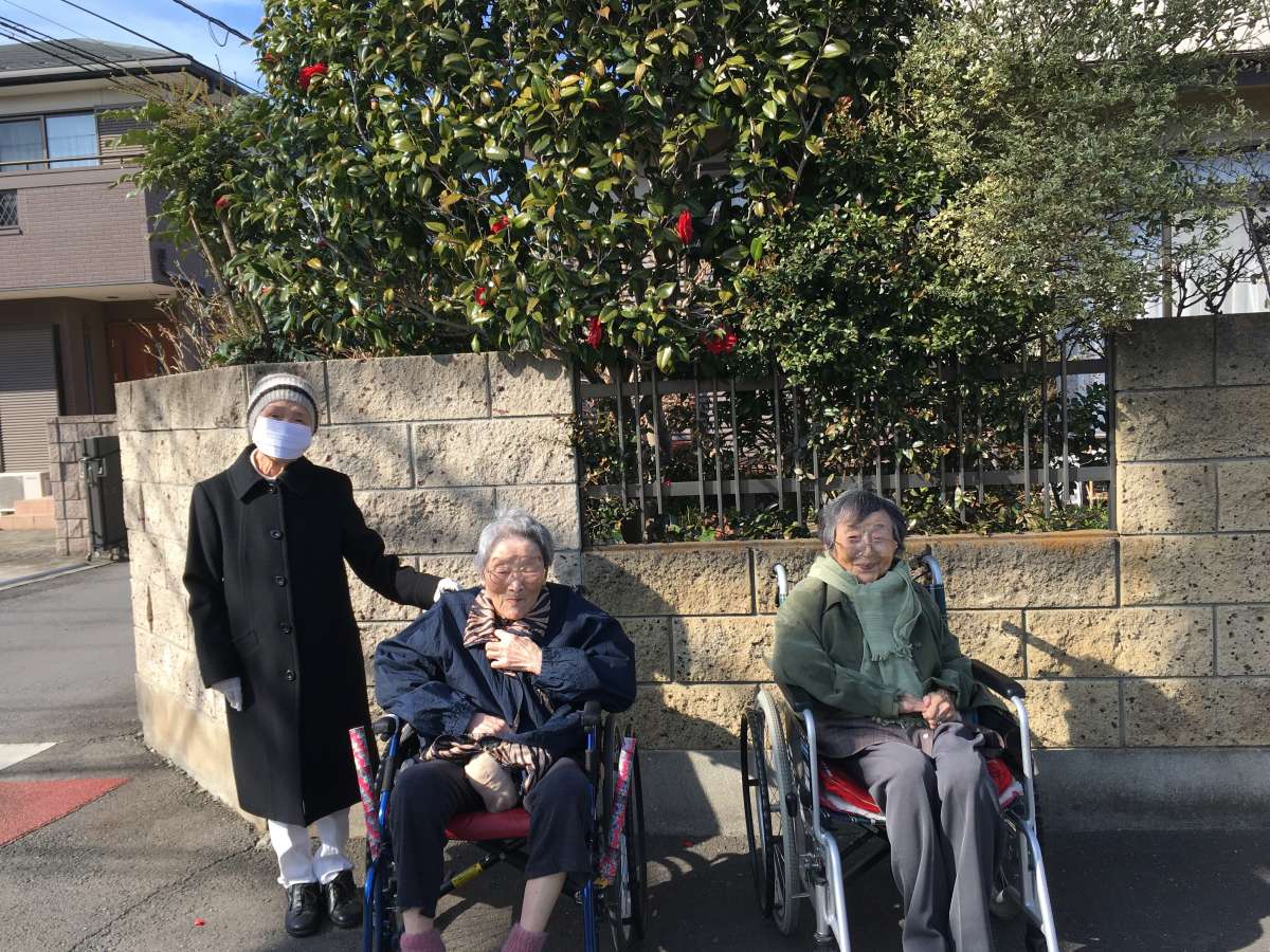咲き始めた梅の花や椿に春の訪れを感じていらっしゃる入居者様の様子をどうぞ(/・ω・)/
