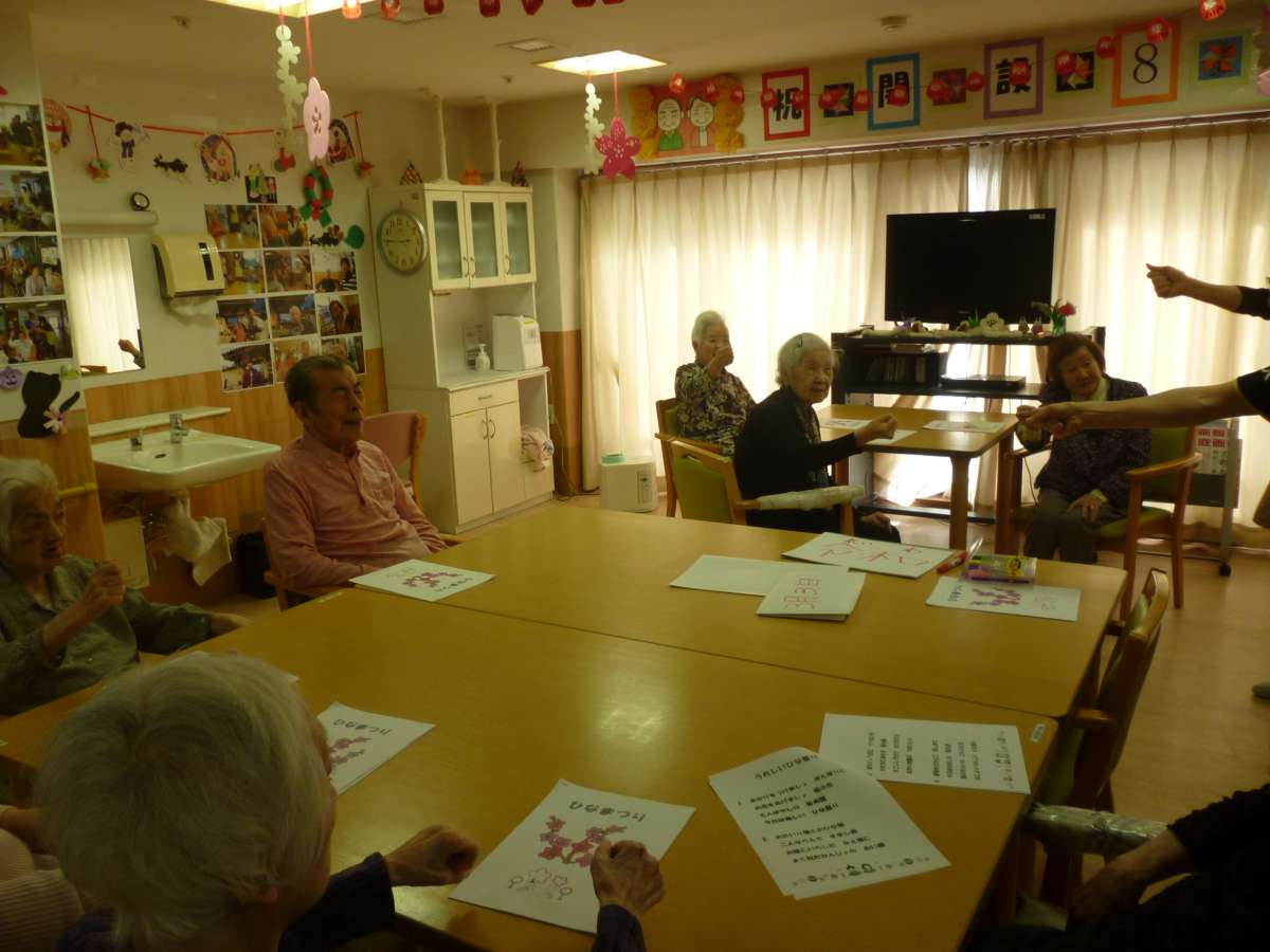 3月1日 ひな祭りレクを行いました。今回、コロナウィルスの影響もありご家族様には大変申し訳なかったのですが、参加をご遠慮頂き入居者様と職員だけで実施しました。