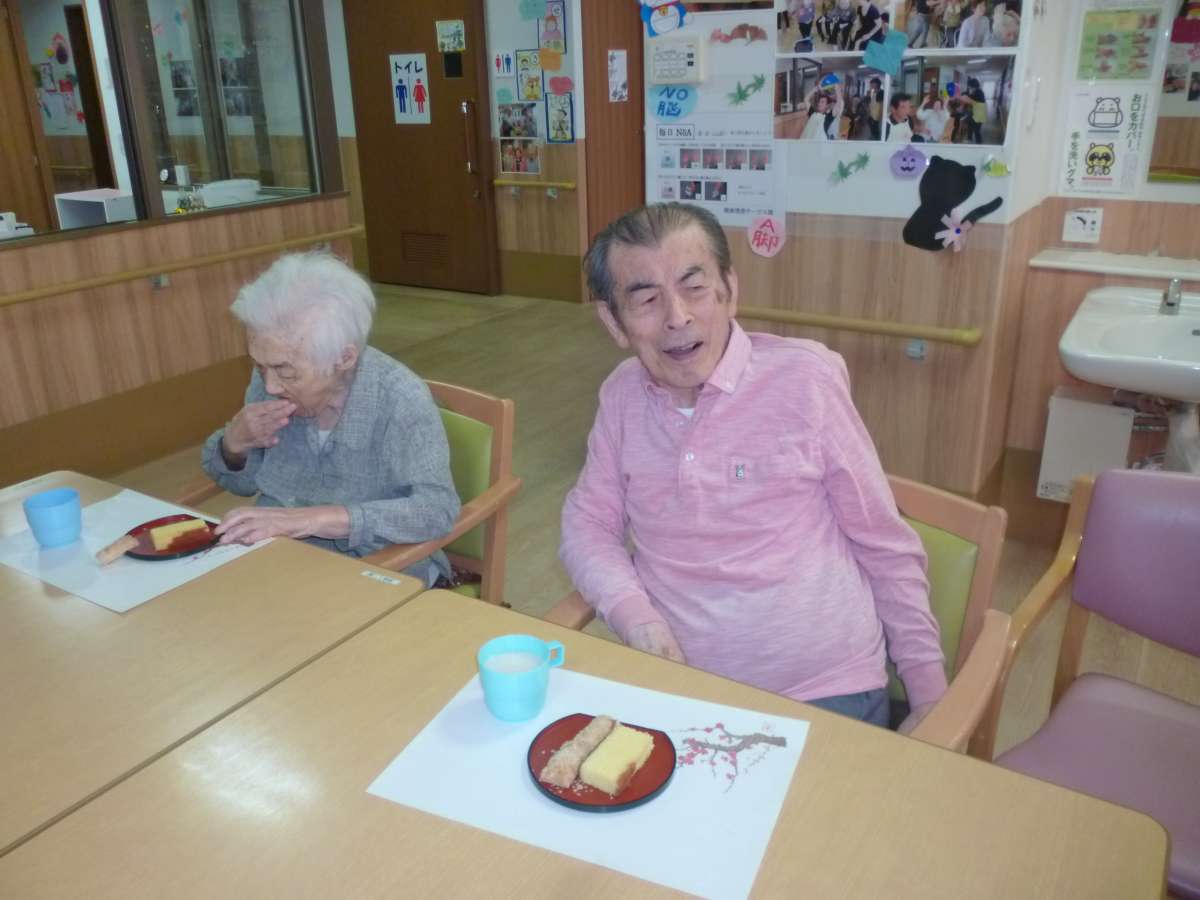 ひな壇の前で写真を撮り、ゲームや体操、合唱などをして、おやつにカステラを召し上がって楽しいひと時を過ごして頂きました。