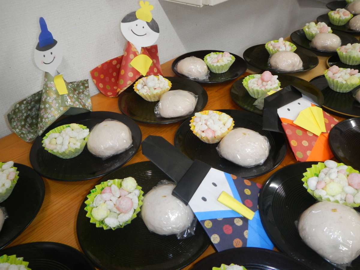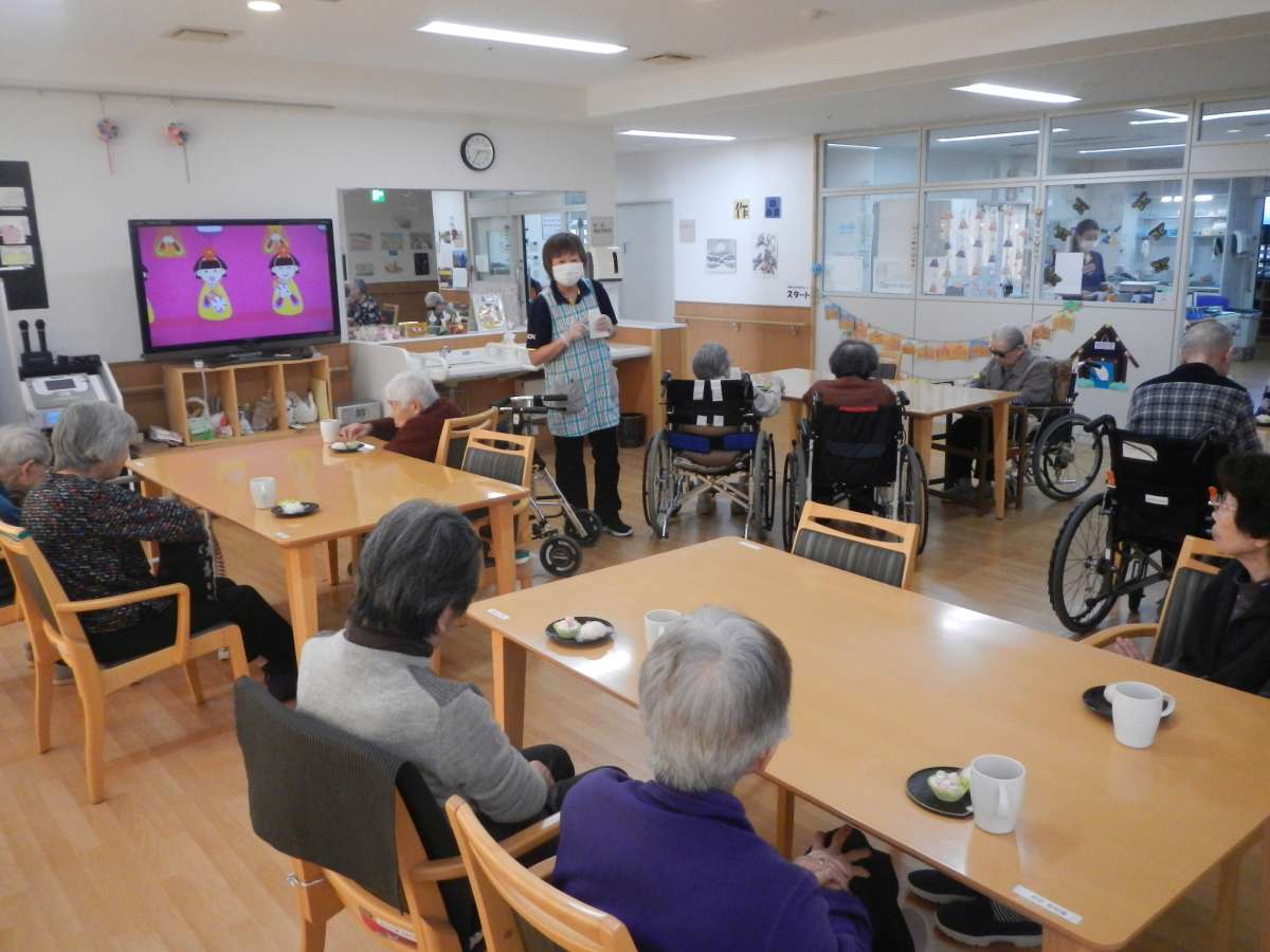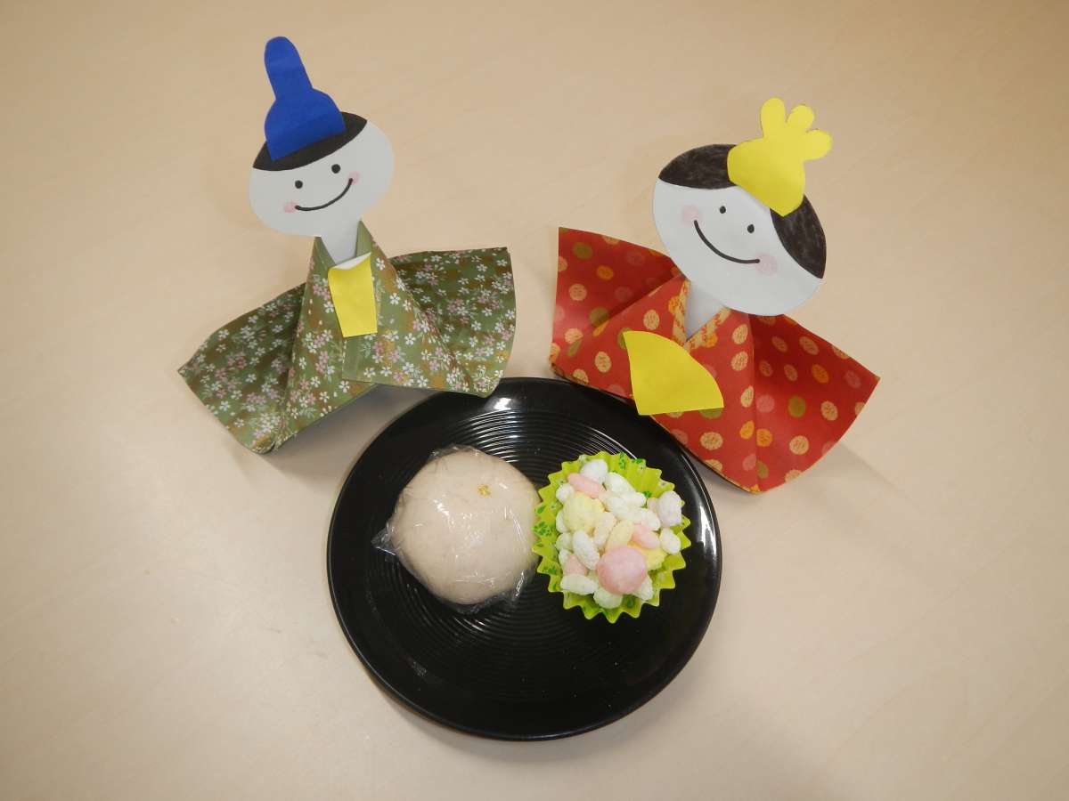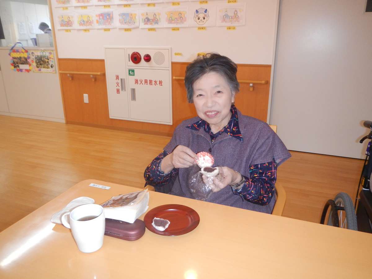 介護付有料老人ホームみんなの家・北本中丸では、「とらや」の金粉が乗ったおまんじゅうとひなあられをご用意して、ひなまつりを行ないました。
