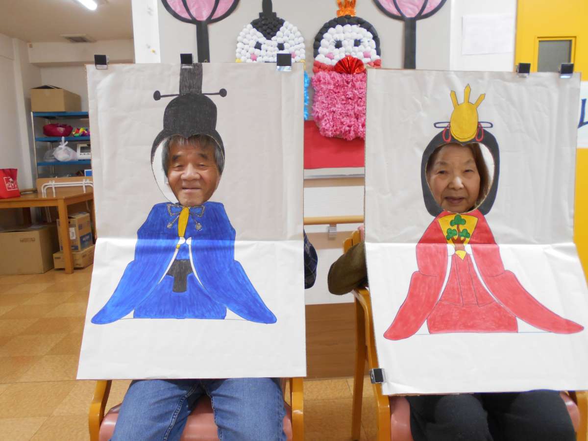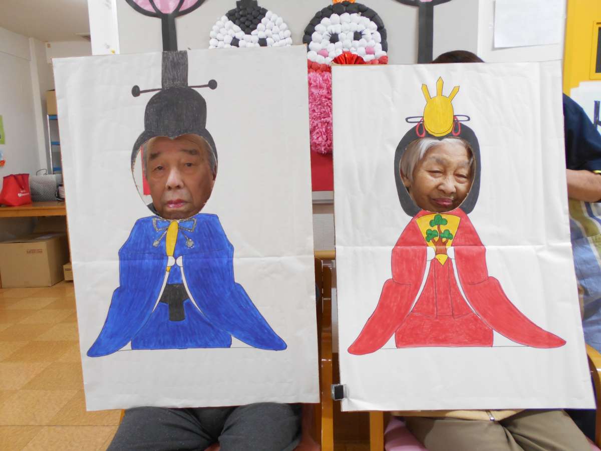 グループホームみんなの家・戸田では、桃フロアと桜フロアで、皆様にお内裏様とお雛様になって頂きました( *´艸`)