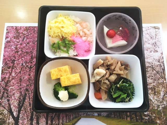 ちらし寿司や筑前煮、菜の花の辛し和え、厚焼き玉子、スタッフ手作りデザート!!