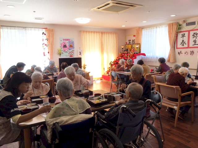 豆まきが終わった頃、皆さんで倉庫からお雛様を出して飾りつけです。